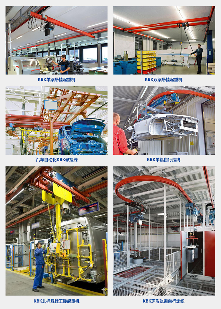 3.柔性組合式懸掛起重機的軌道根據(jù)吊重和吊點之間的距離三種型號:KBK-I、KBK-II、KBK-III等,這些標準組件為冷軋?zhí)胤N型材。型材是中空的冷壓型材,型材是中空的冷壓型材,接近封閉式的型材確保內(nèi)部小車移動的表面整潔及移動的潤滑性。