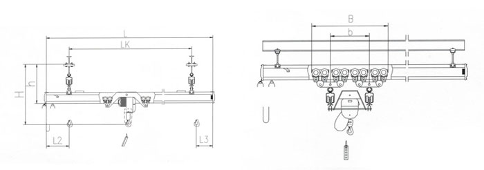 | 起重量(kg) 尺寸(mm) | L | LK | L2 | L3 | H | h | B | b | |