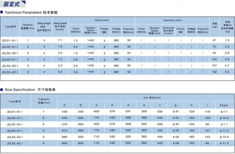 JDL單速型(掛鉤式) 1t-5t